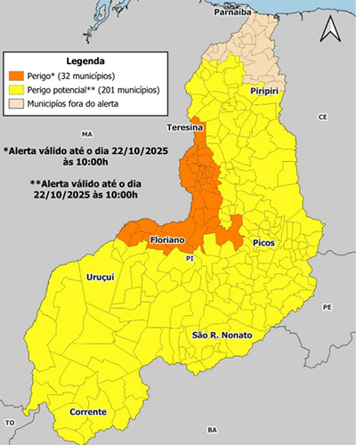 A meteorologista Sônia Feitosa, da Secretaria de Meio Ambiente e Recursos Hídricos do Piauí (Semarh-PI), informou que os municípios de Bom Jesus e Corrente, além de outros municípios no Sul do estado, podem registrar chuvas intensas nos próximos dias, com previsão de pancadas fortes até a próxima quarta-feira (22). O alerta é baseado em informações do Instituto Nacional de Meteorologia (Inmet).